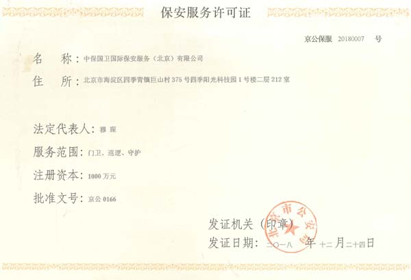 中保國(guó)衛(wèi)國(guó)際保安服務(wù)(北京)有限公司,屬中保國(guó)衛(wèi)集團(tuán)旗下子公司。能全方位的為大型客戶(hù)提供優(yōu)質(zhì)的安保、押運(yùn)服務(wù),是集人防和技防于一體的新型正規(guī)化綜合安保押運(yùn)服務(wù)企業(yè),提供人防、物防、技防、聯(lián)網(wǎng)報(bào)*、非武裝押運(yùn)等安防相關(guān)的一站式服務(wù)。